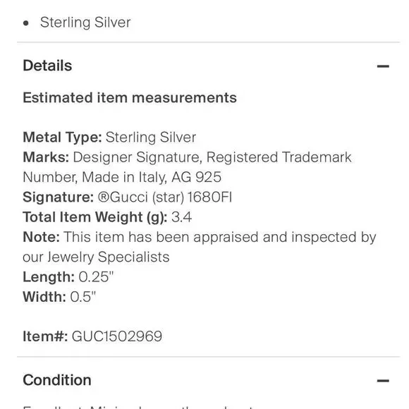 GG Sterling Silver Stud Earrings AG 925. Excellent Condition. Dustbag included, no box.Please see last photo for all specs and sizing.