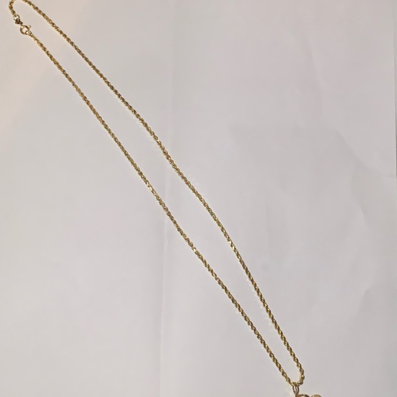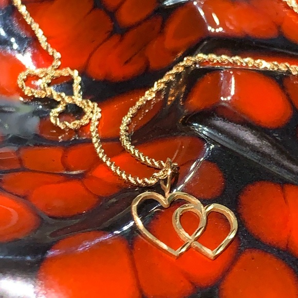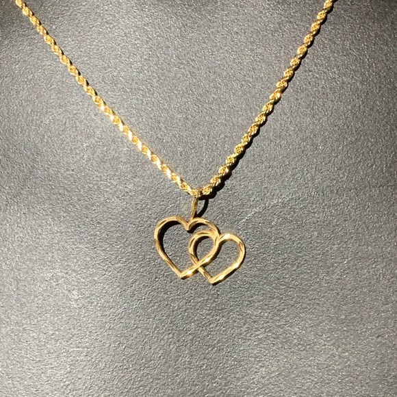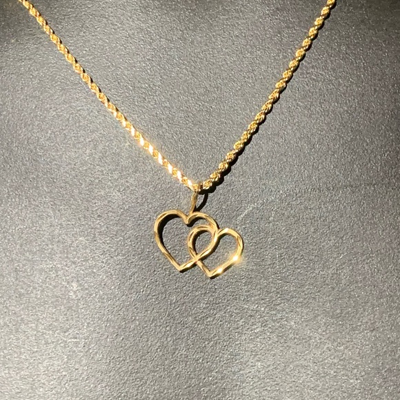 Beautiful 14k 2mm 18” diamond cut rope necklace with a 14k double heart pendant 2.90g