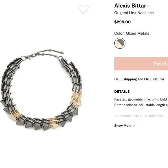 BRAND NEW without tags."Faceted, geometric links bring bold detail to this mixed-metal Alexis Bittar necklace. Adjustable length and lobster-claw clasp."- Ruthenium plate / 10k...