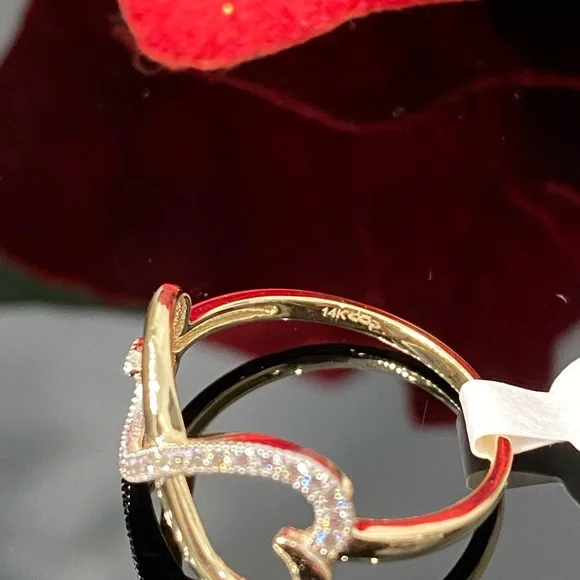 Style: Ring Stone: Cubic ZirconiaInfinity Size: 18.3mm x 9.7mm approx. Ring Size: US 6.5Metal: 14K Yellow Gold. NOT GOLD PLATED NO TRADE!! Photos are enlarged to show detail...