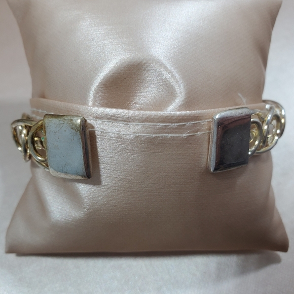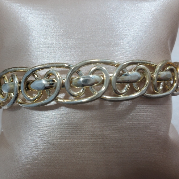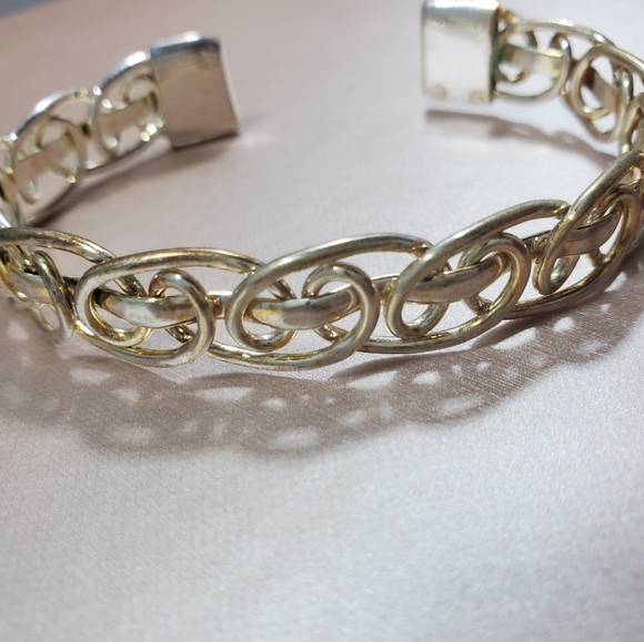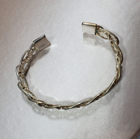 This is NWOT, sterling silver, approximately 18 grams, bracelet that has delicate silver and gold swirls to make up this adjustable bangle. Awesome everyday piece. Thank you for visiting my closet and please bundle to save more money. Prices are over 70 percent below wholesale price. Again, thank you and follow me to see weekly listings and updates.