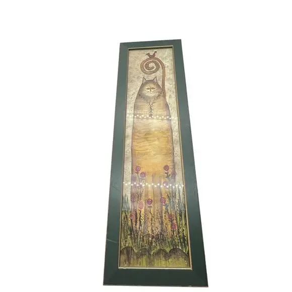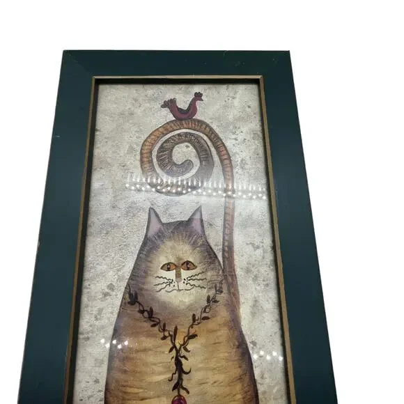 Add a touch of whimsical charm to your home with this vintage framed print by Eileen Smithson! This delightful piece of folk art features a playful cat design, perfect for any cat lover or art enthusiast. The print measures 22 x 7 inches and is signed by the artist. It´s in excellent condition and ready to hang. Bring a bit of joy and color to your space with this unique and charming artwork! It will be packaged safely and shipped promptly. This is a great addition to any collection!Don´t miss out – make it yours today!