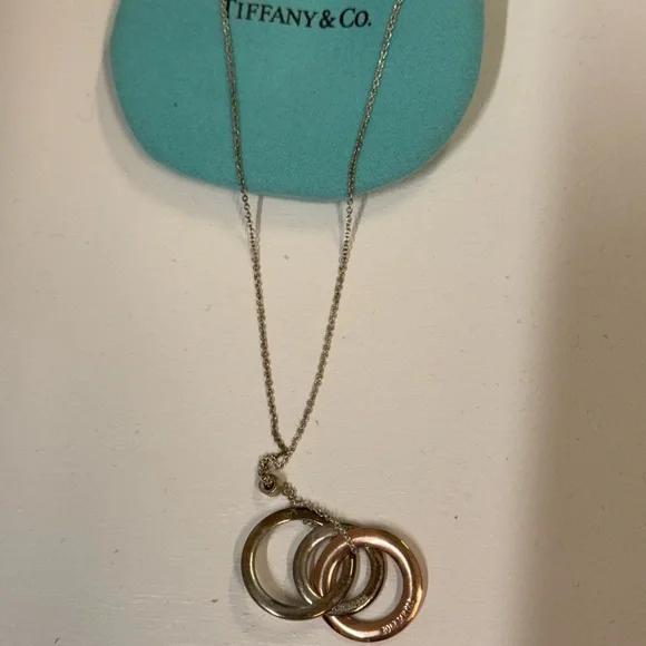Elegant interlocking circles necklace. Features silver and gold tones. Classic Tiffany & Co. design.