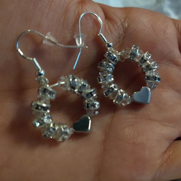 Brand- SCZColor- clear and silverSize- about 1" diameterMaterial- Sterling Silver .925 and Swarovski CrystalsQuality- Brand New!Style- cute 1" diameter hoop earrings, silver heart...