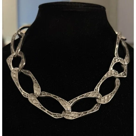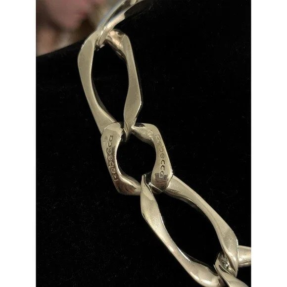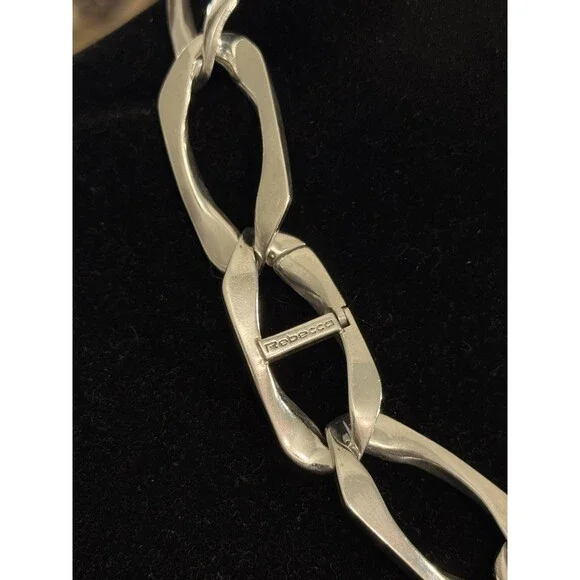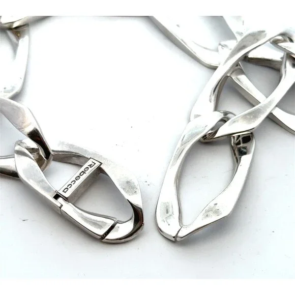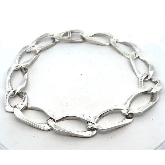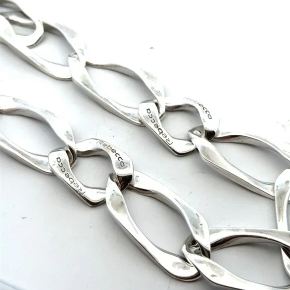 * Designer Rebecca 925 Sterling Silver Elongated Irregular Oval Link 16" Necklace * Length: 16"* Width: 6/8"* Weight: 94.4 g* Marked: Made in Italy * Rebecca* Condition: As pictured.* S7769