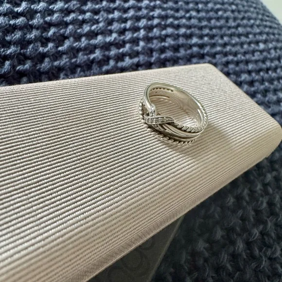 This elegant silver braided ring features a stunning design with intricate detailing. Perfect for adding a touch of sophistication to any outfit.