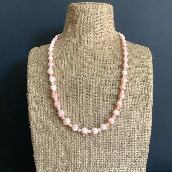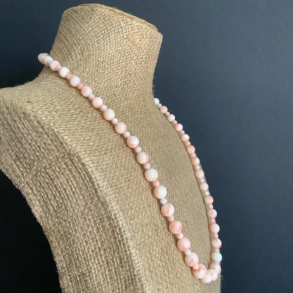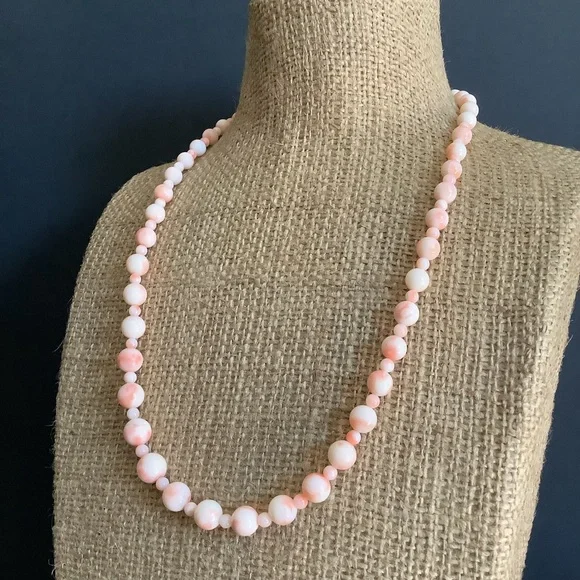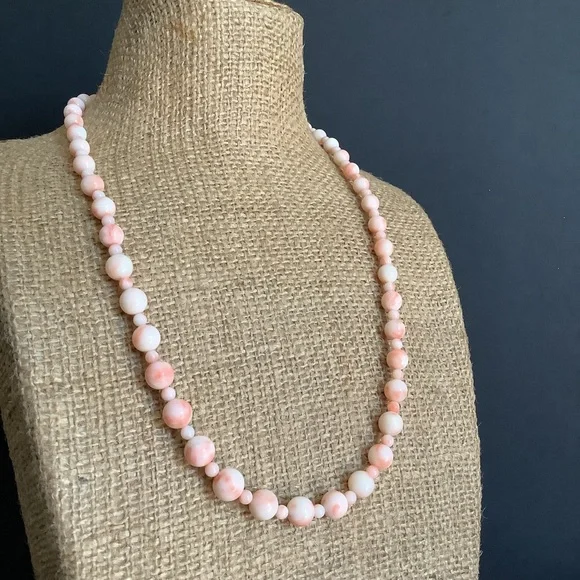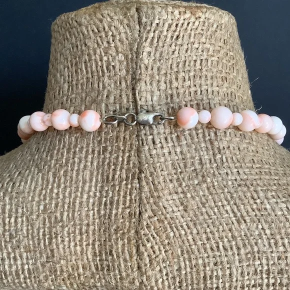 Vintage 925 s silver genuine angle skin beaded necklace.Very good vintage condition.925 s silver clasp.Approx necklace length:22”inches Approx bead size:4mm 7mm~9mmDisplay coin...