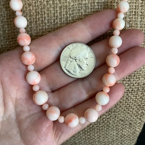 Vintage 925 s silver genuine angle skin beaded necklace.Very good vintage condition.925 s silver clasp.Approx necklace length:22”inches Approx bead size:4mm 7mm~9mmDisplay coin size 24mm#c-1