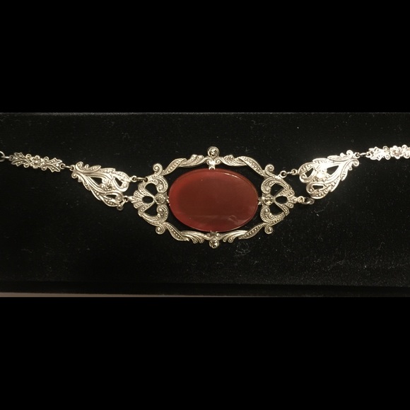 Art Nouveau Sterling Marcasite Carnelian Necklace