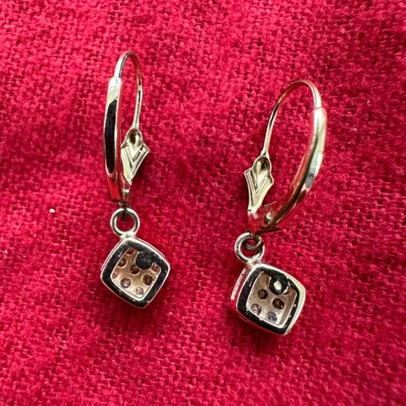 14k gold square pave diamond lever back earrings18 full cut diamonds (9 per earring) .30 carats total weightAll fine color and qualityVery Good used conditionSetting converted...