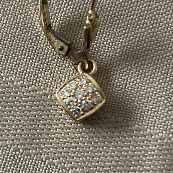 14k gold square diamond lever back earrings