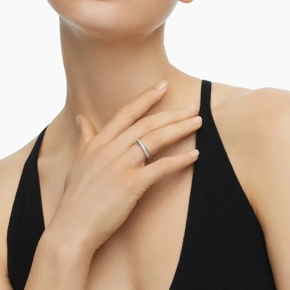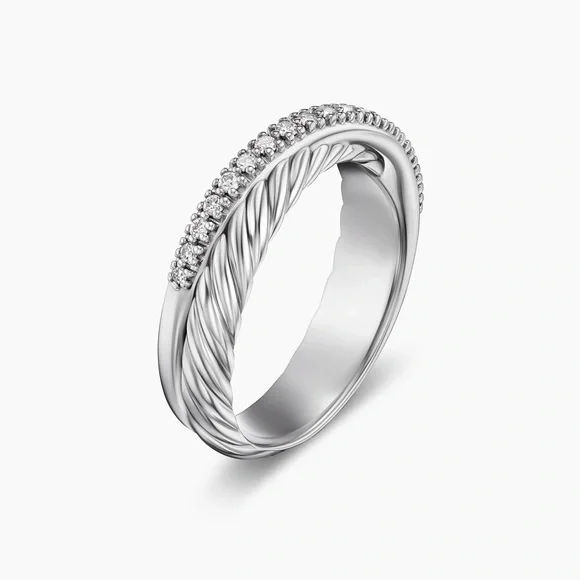 David Yurman Crossover Band Ring - Silver and Diamonds - Size 5.5