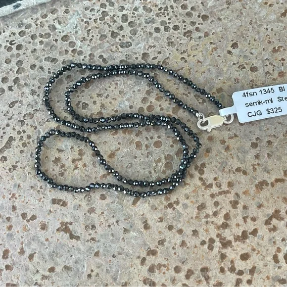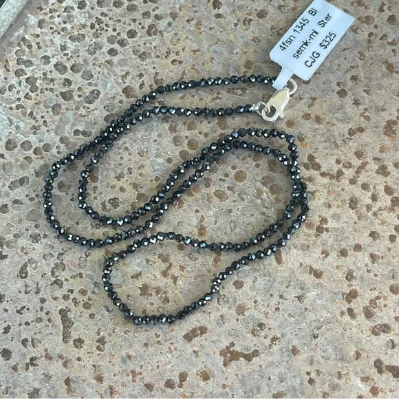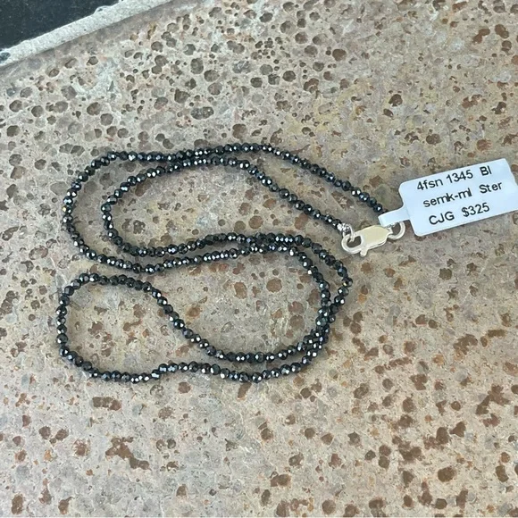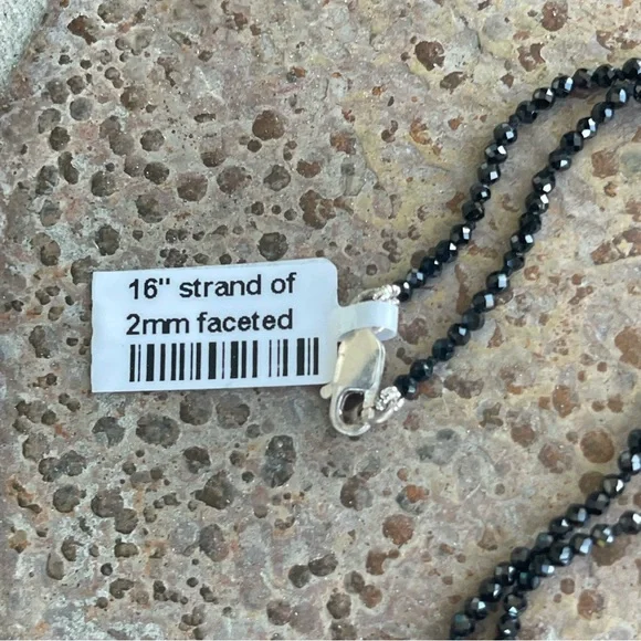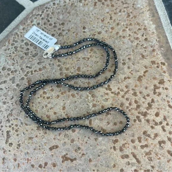 This elegant black faceted Spinel beaded necklace 16” long, black spinels are 2mm faceted sterling silver 925 lobster clasp, adds a touch of sophistication to any outfit....