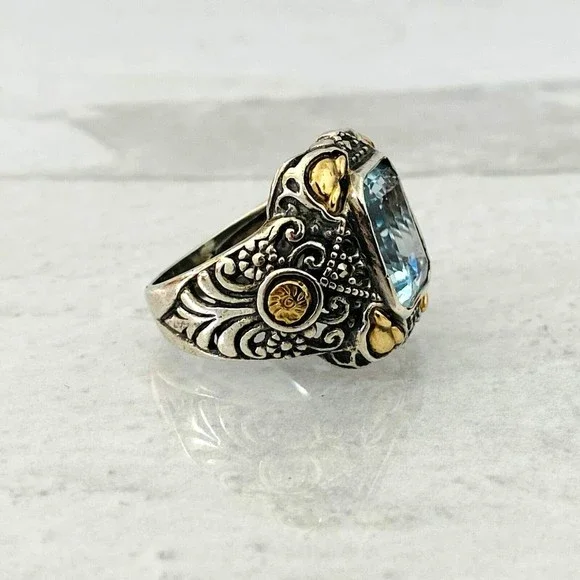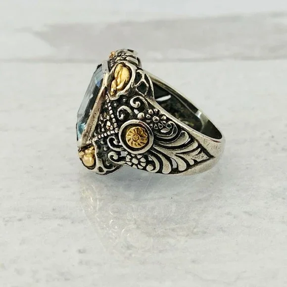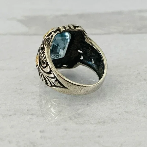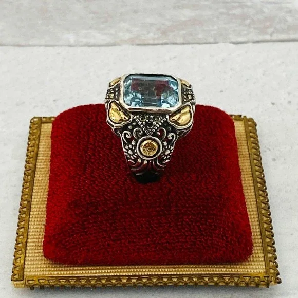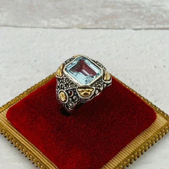 Vintage Sterling Silver 18k Gold Swiss Blue Topaz Statement Ring poss Krementz