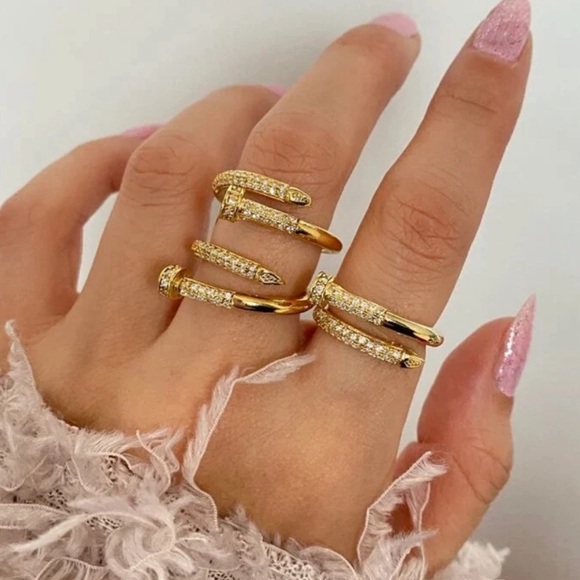T R E N D I N GVintage Un CLOU Nail Ring18k yellow gold finish, High Quality Size: 7Small Round Diamond cut Crystals.Richemont Jewellery Designs Meaning of Un CLOU:Original,...