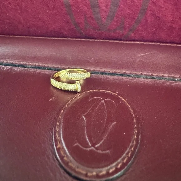 T R E N D I N GVintage Un CLOU Nail Ring18k yellow gold finish, High Quality Size: 7Small Round Diamond cut Crystals.Richemont Jewellery Designs Meaning of Un CLOU:Original, independent, fearless, and free.Reflects the bold spirit of the era.Retail Price: $1,300