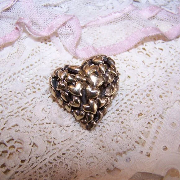 John Hardy Retired Sterling Silver 18K Gold "Lots of Hearts" Pin Brooch