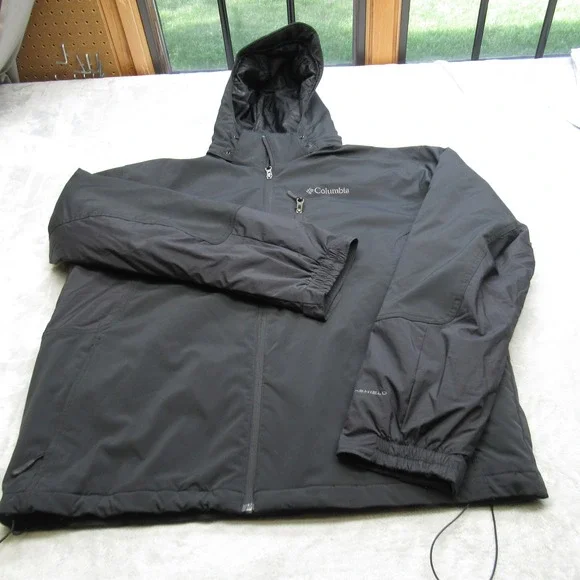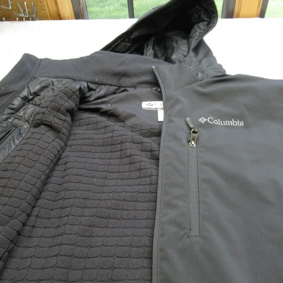 Columbia Softshell Jacket Mens XL Black Omni Shield Hooded Insulated Waterproof