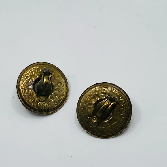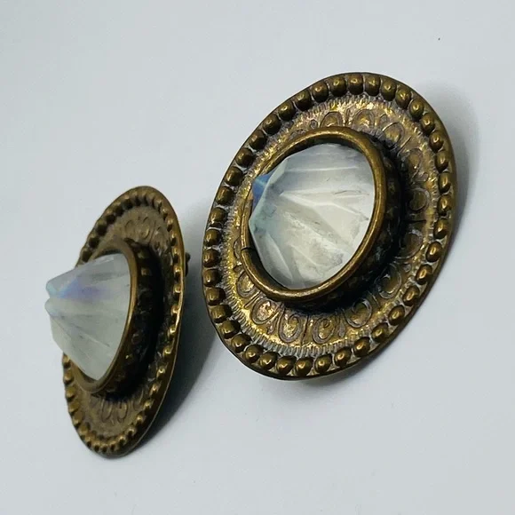 Zoe Costa Paris Signed Vintage Molded Glass Flame Etched Metal Massive Earrings