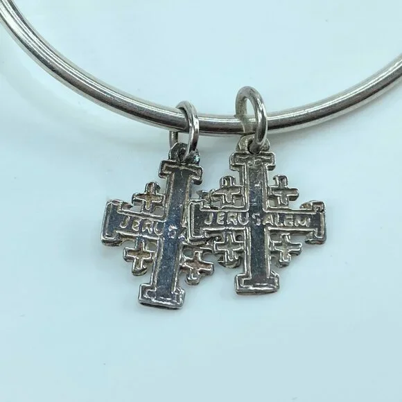 James Avery sterling St. Teresa Cross & Jerusalem Cross charms bangle 6.5" JR585
