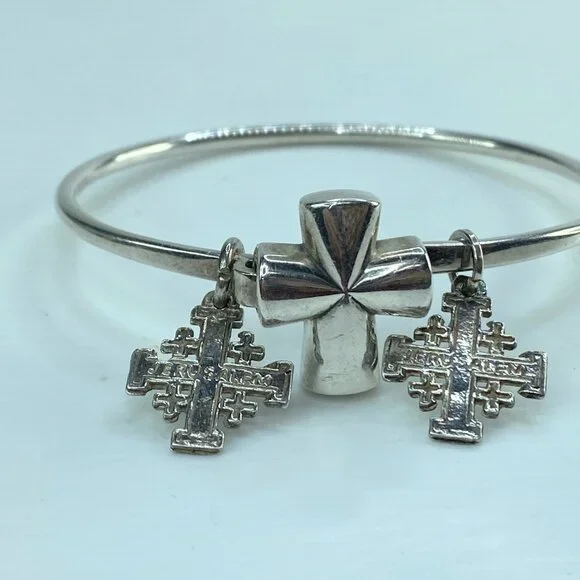 James Avery 925 Sterling Silver St. Teresa Cross Hook-On Bangle BraceletIt has two non-brand sterling silver Jerusalem Cross pendants/charmsThe bangle is Rare! Retired!Measures:...