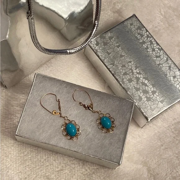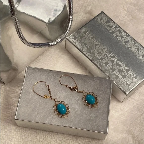 Vintage Turquoise 10K Yellow Gold Dangle Earrings