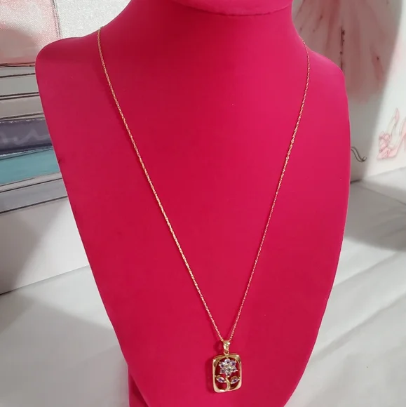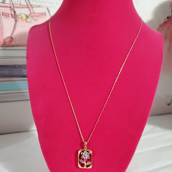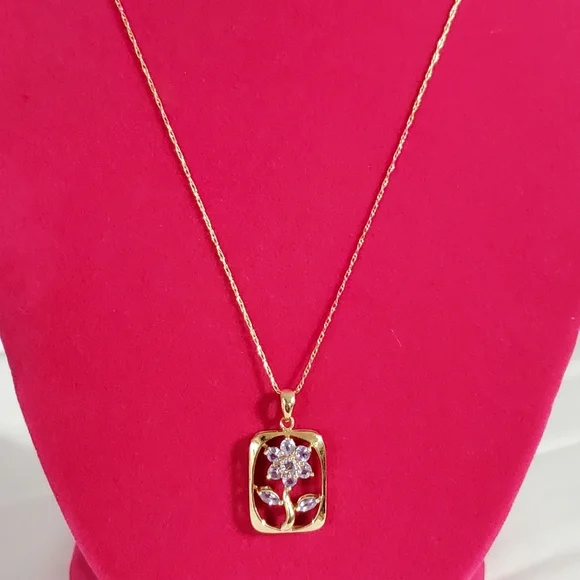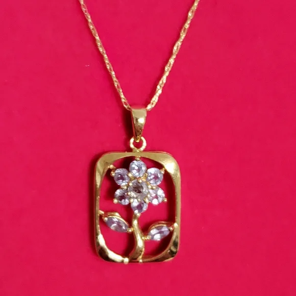 14K Gold Tanzanite Flower Pendant Necklace