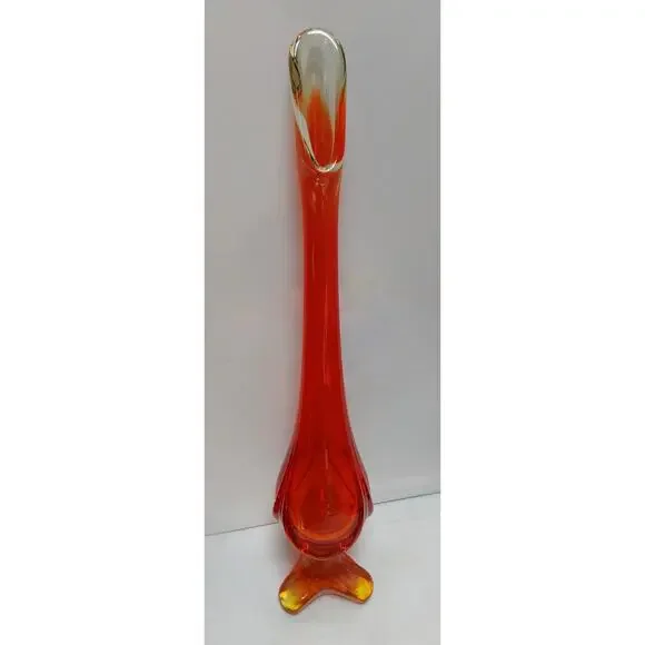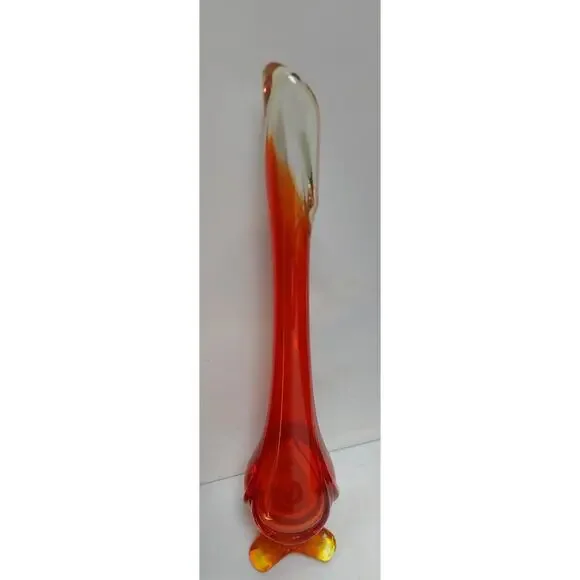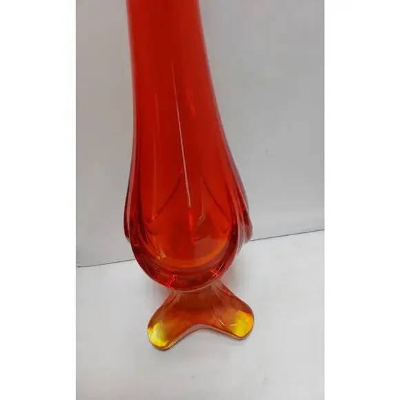 VIKING Amberina Swung Vase MCM 13" Orange Red Art Glass Vase 3 mold seam
