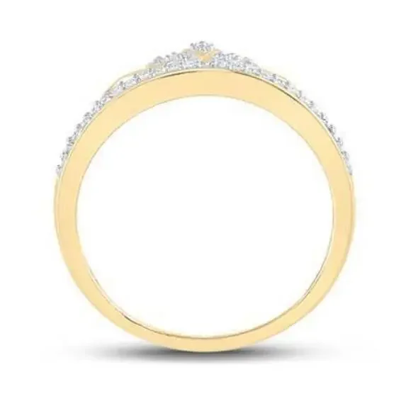 Natural Diamond Crown Tiara Ring 10k Yellow Gold Womens Band