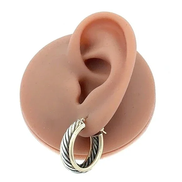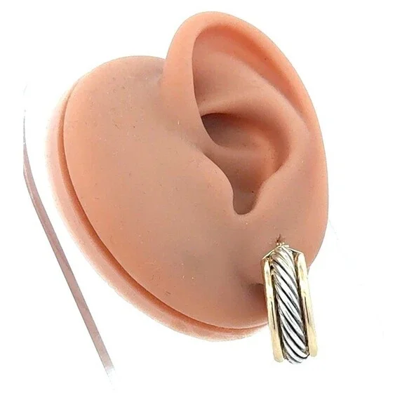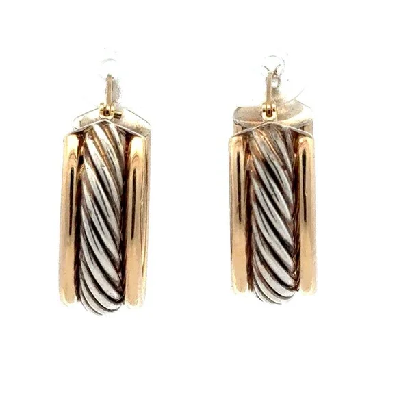 * Designer CJI 925 Sterling Silver 14K Gold Twist Cable Oval Hoop Earrings* Length: 7/8"* Width: 3/8"* Weight: 6.2 tgw * Closure: Snap * Marked: CJI * 925 * 14K * Condition: As pictured. * S7733