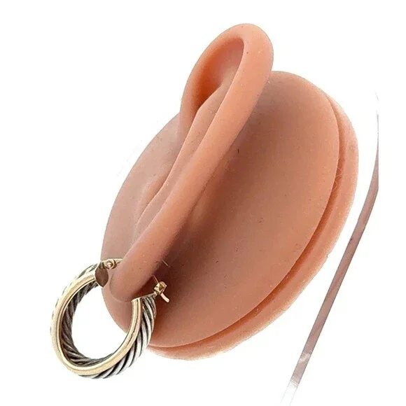Designer CJI 925 Sterling Silver 14K Gold Twist Cable Oval Hoop Earrings