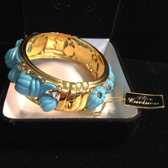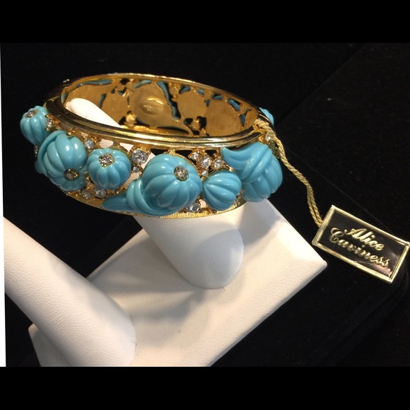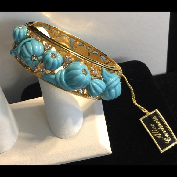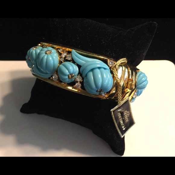 • NWOT Vintage Signed Designer Alice Caviness • Gold Tone Faux Turquoise And Crystal Bracelet• Elegant Open Work Pumpkin Design • Dimensions: Internal Circumference...