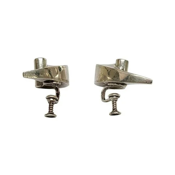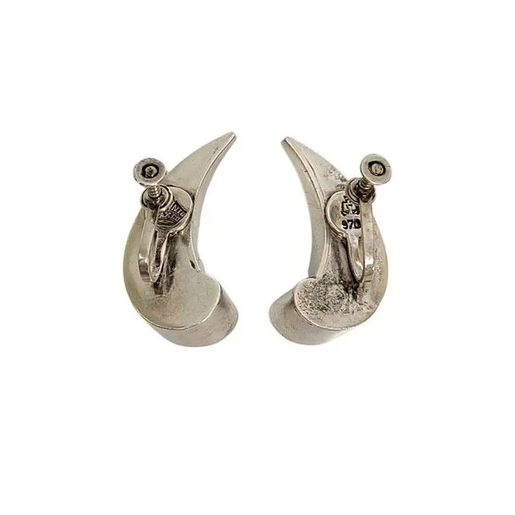 Vintage Antonio Pineda Mexico 970 Silver Wave Design Screwback Earrings #9867