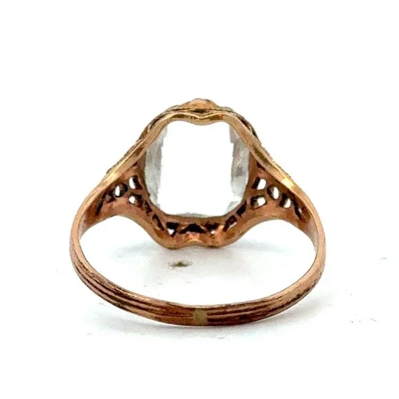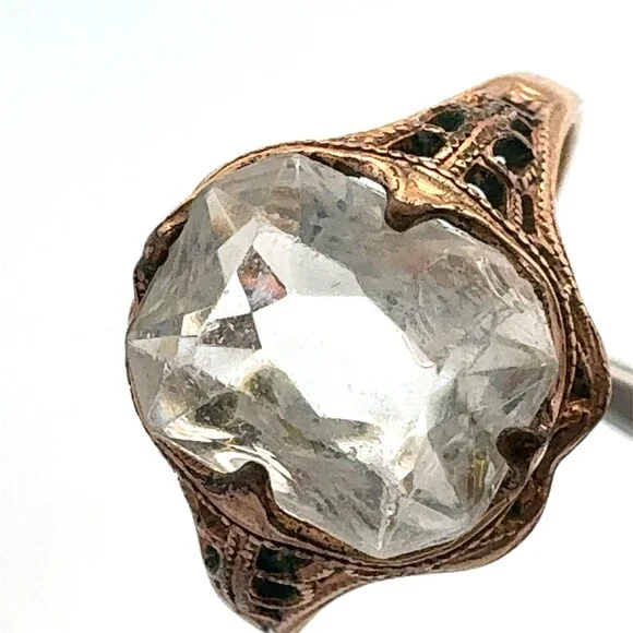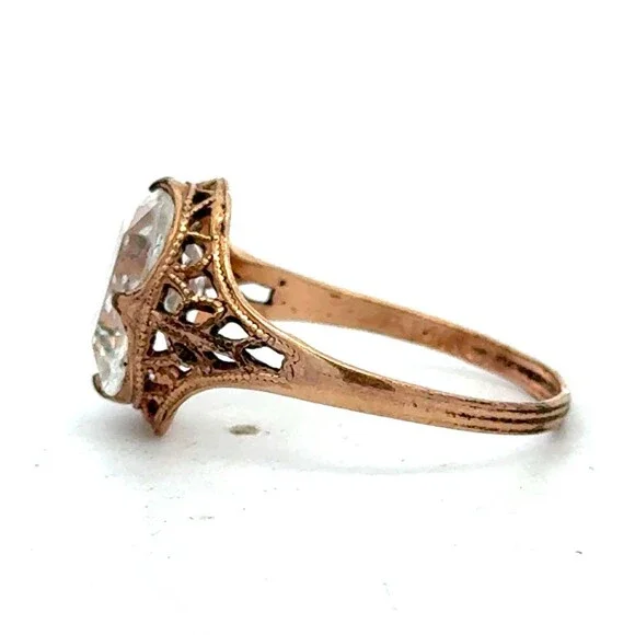 Vintage Estate 14k Yellow Gold Art Deco Cushion Cubic Zirconia Engagement Ring
