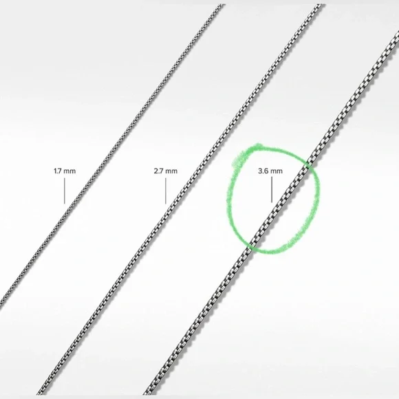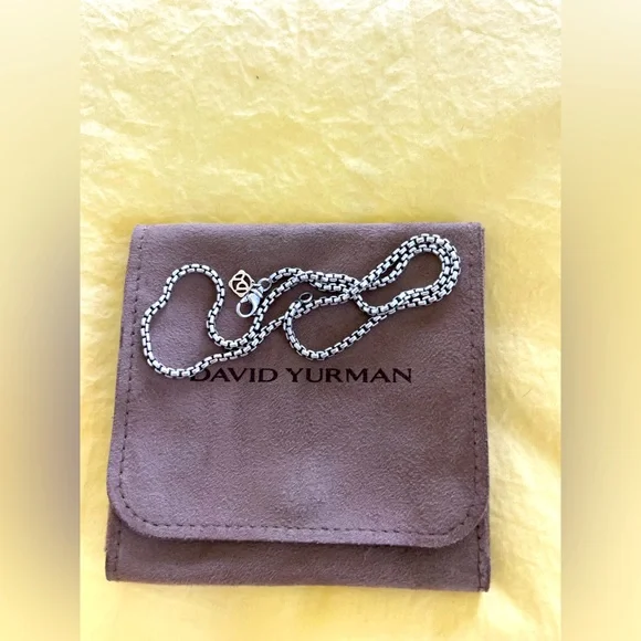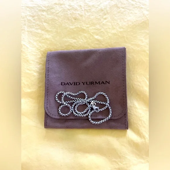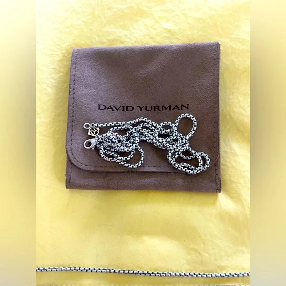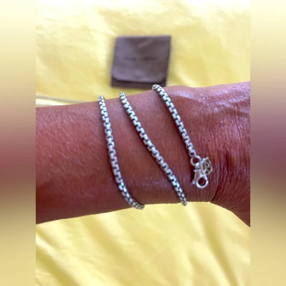 David Yurman sterling silver 32” box chain necklace with 14k yellow gold accent 3.6mm width Perfect for layering!*I HAVE A SET OF 3 of these chains. Sizes 16” / 18” / 32”. I HAVE WORN ALL 3 AT ONCE MAKING IT LOOK LIKE I AM WEARING 4 CHAINS AS THE 32” DOUBLES UP TO LOOK LIKE 2 CHAINS*They look super chic/cool when layered.They are all in perfect condition. I recently had them polished at the David Yurman shop.I am happy to sell them as a set of 3 or individually.More pics/details on request