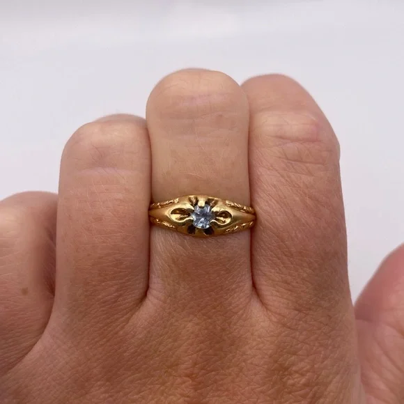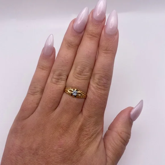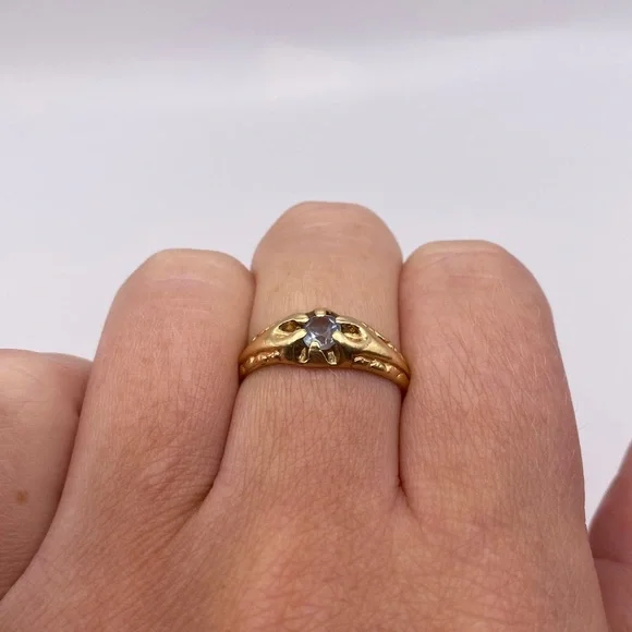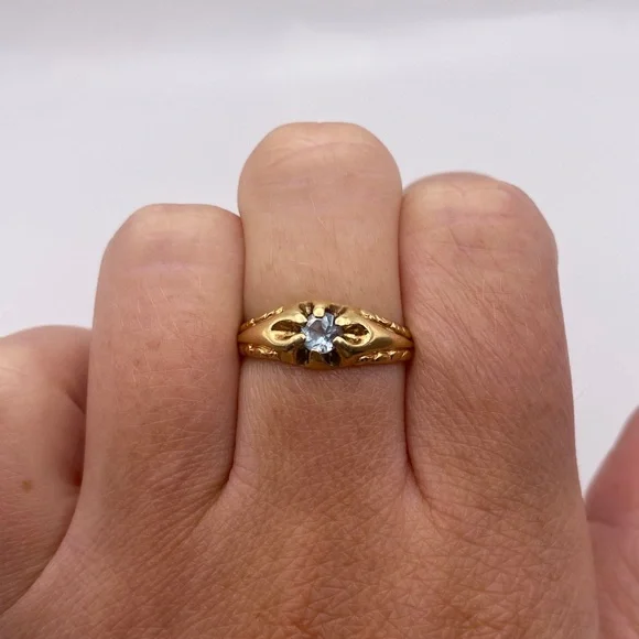 item #51914k yellow gold aquamarine ringSize 6 1/2 All jewelry is tested for purity.Comes in a gift box and will be professionally cleaned before shipped (: