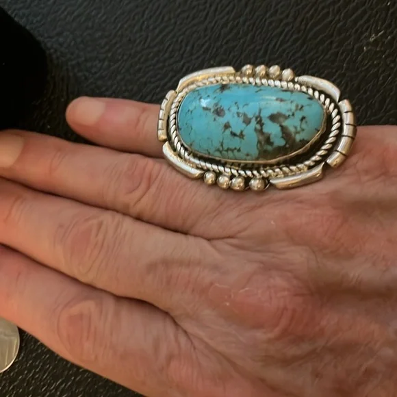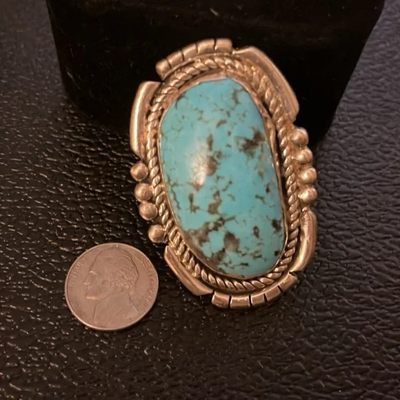 Elevate your style with this stunning turquoise and gold statement ring. Perfect for any occasion.