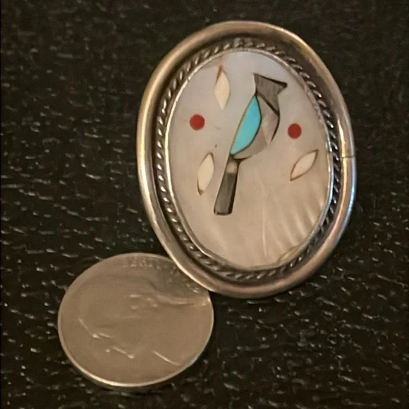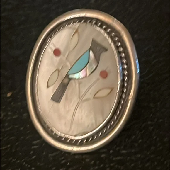 Elegant silver ring featuring a unique bird inlay design. Perfect for adding a touch of nature-inspired style to any outfit.