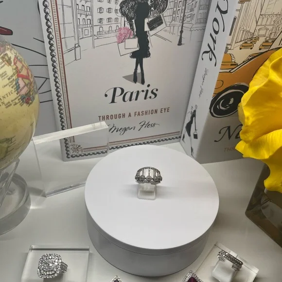 These are REAL Diamonds. White Diamond Slider Ring in size 7.Platinum/925