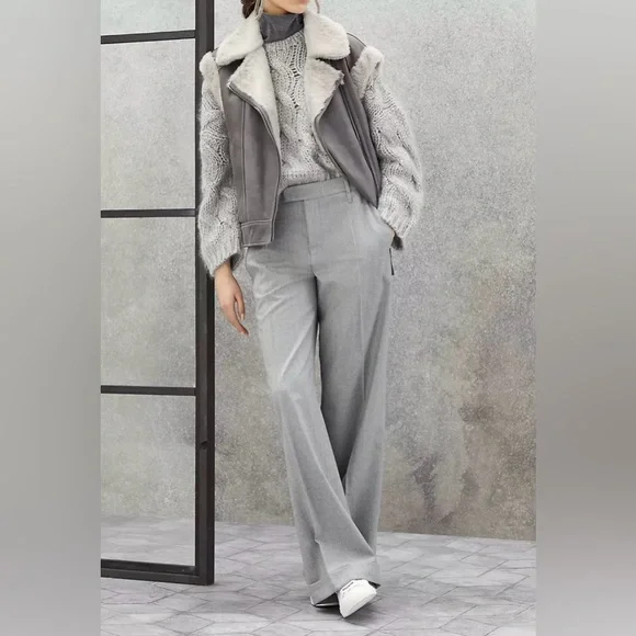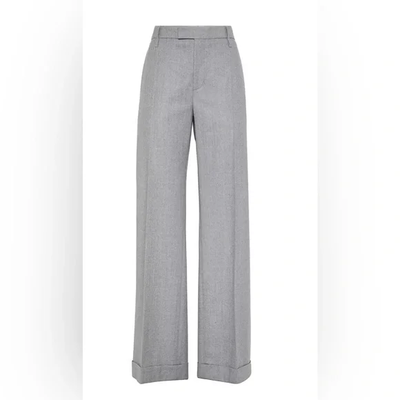Brunello Cucinelli Virgin Wool Flannel Loose Flared Grey Trousers Monili Small