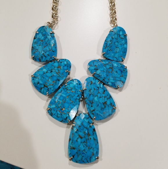 Rare Kendra Scott Harlow Necklace in Bronze Veined Turquoise and Gold. New with tag / never worn.Sold out at Kendra Scott. This piece is no longer produced.Beautiful statement necklace.This one has incredibly pretty veining and stones!Large statement necklace.