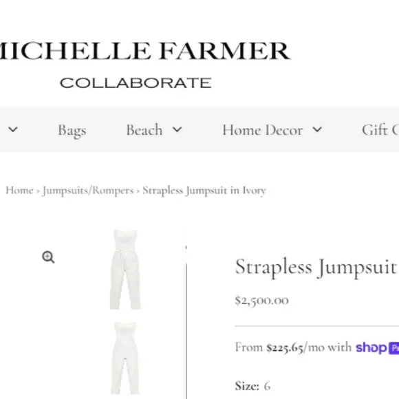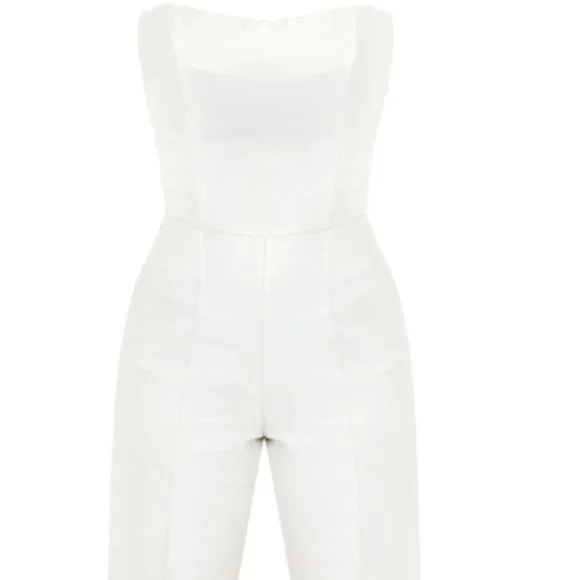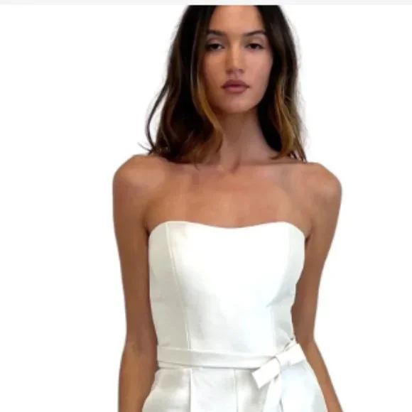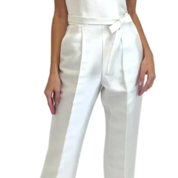 Size 6 beautiful Michelle Farmer Silk & Ivory Strapless Jumpsuit. Includes optional belt. Perfect for anything bridal! Purchased in Southampton from the salon.