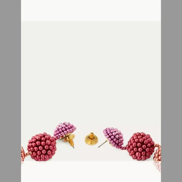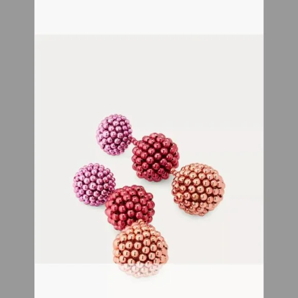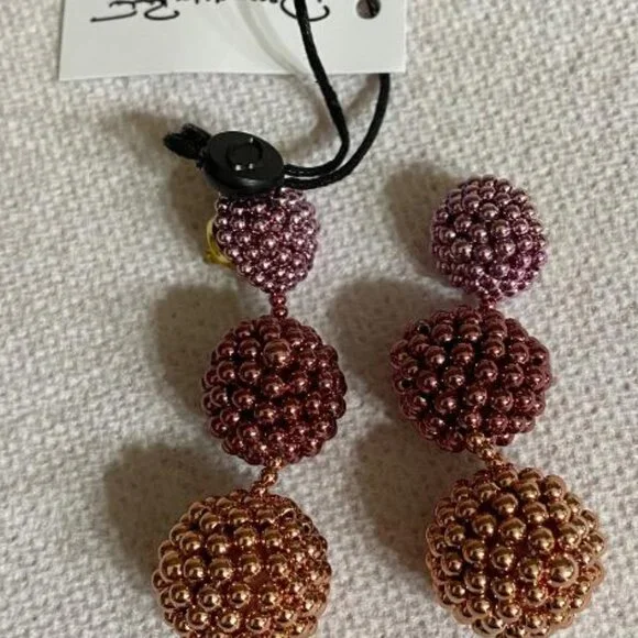 Oscar de la Renta NWT 3-Ball Beaded Chandelier Earrings