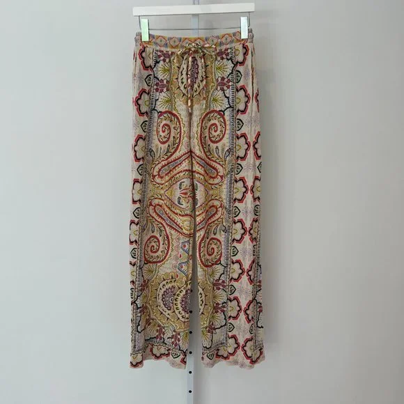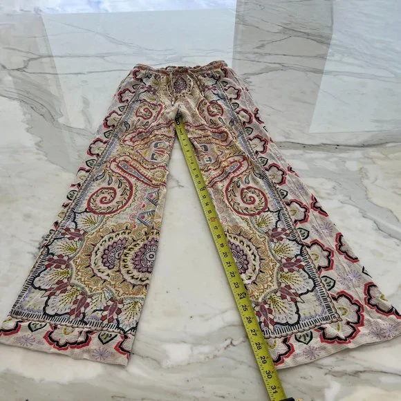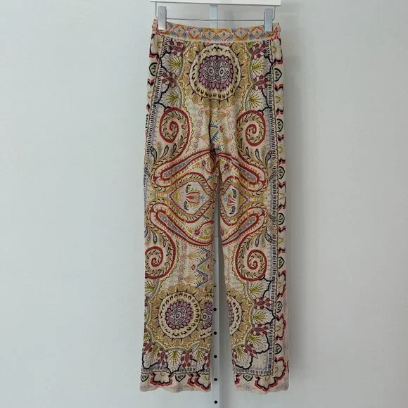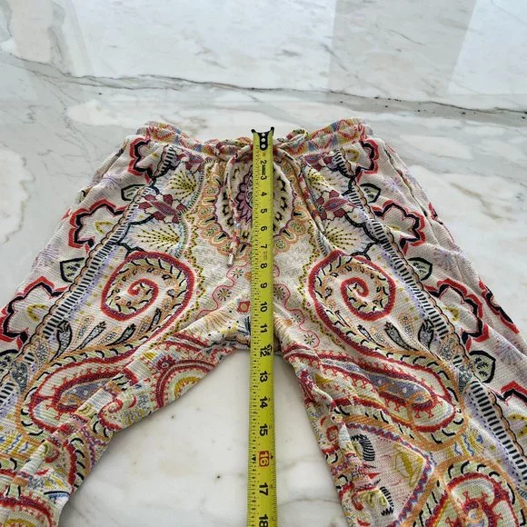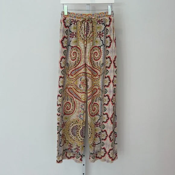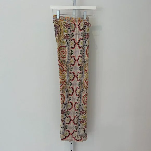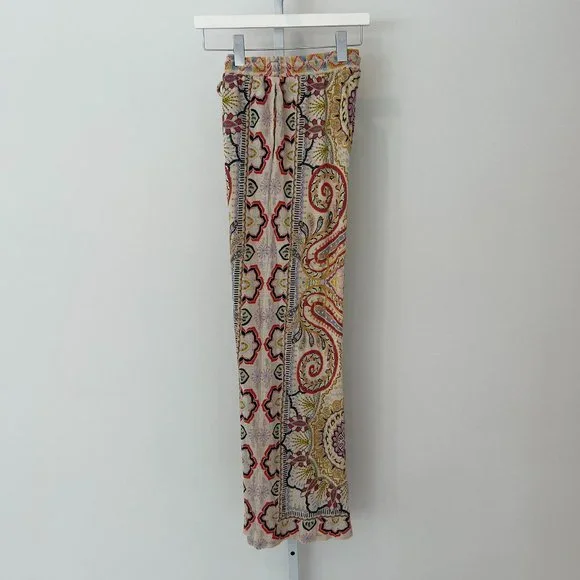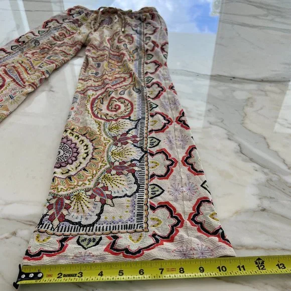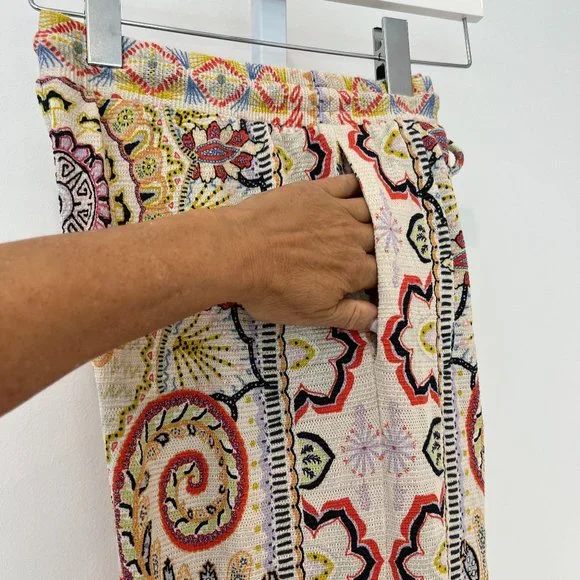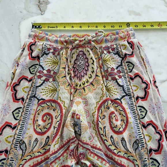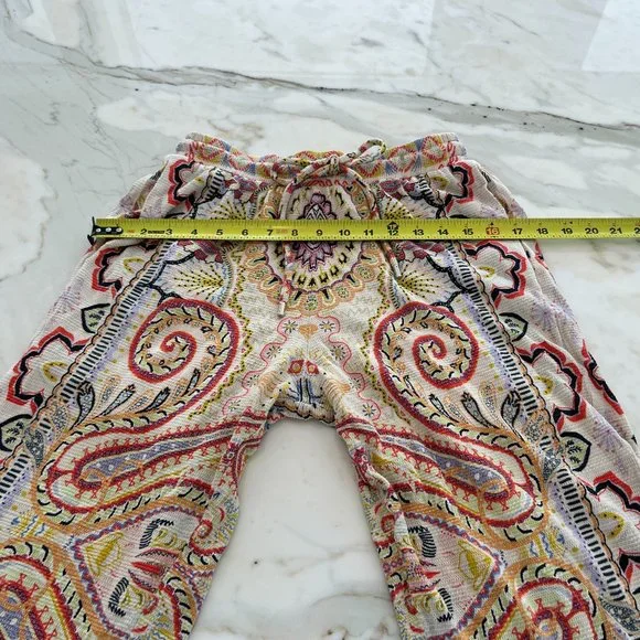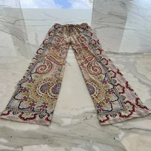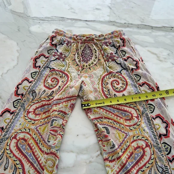 ETRO NEUTRAL PAISLEY PRINT PULL-ON ELASTIC WAIST DRAWSTRING PANTS SIZE 8 / 42