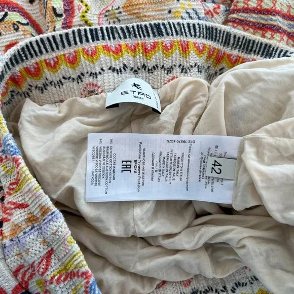 ETRO NEUTRAL PAISLEY PRINT PULL-ON ELASTIC WAIST DRAWSTRING PANTS SIZE 8 / 42Brand: EtroStyle: D12 19570 437556% Cotton & 44% Viscose (Stretchy)Color: Neutral MultiSize: IT 42 / US 8Condition: Very good, lined to shorts, worn twice, may arrive wrinkled.