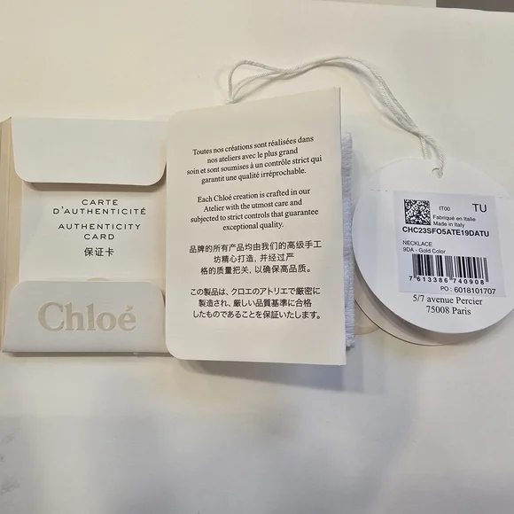 Brand new and in original box, authentic Chloe alphabet charm necklace (letter A) in light gold. Never worn - received as a gift but was past the return or exchange period