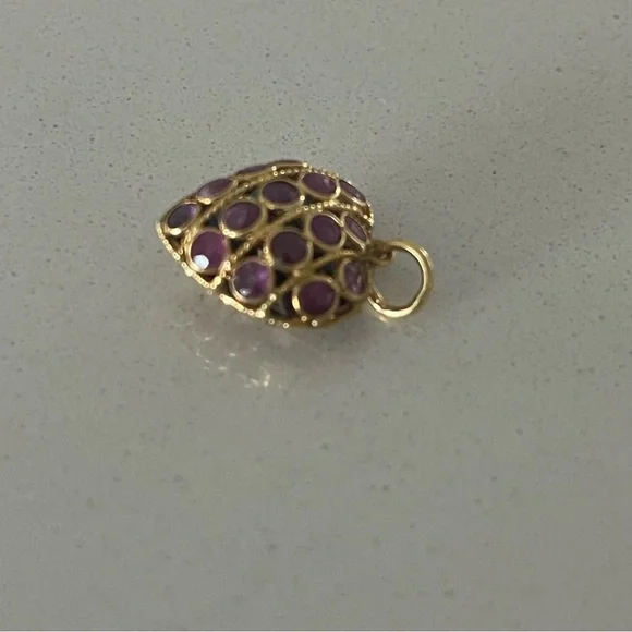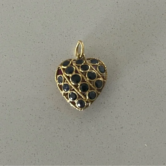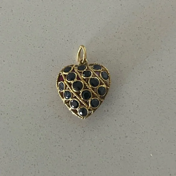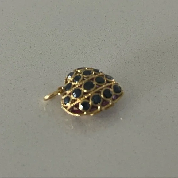 14kt. Yellow Gold reversible sapphire and ruby heart, (15) sapphires on one side (15) rubies on the other side, heart ♥️ is 19mm long 14mm wide, and weighs 1.4 grams, Elegant...