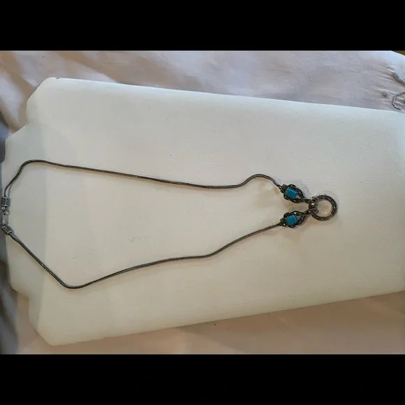 Beautiful long changeable pendant necklace with turquoise and crystals .925 sterling silver