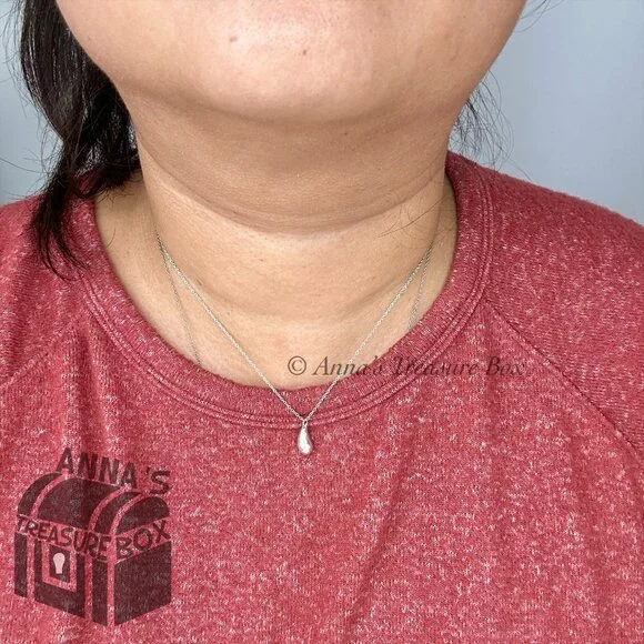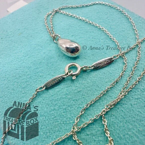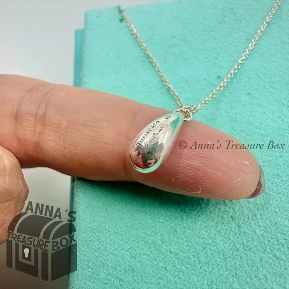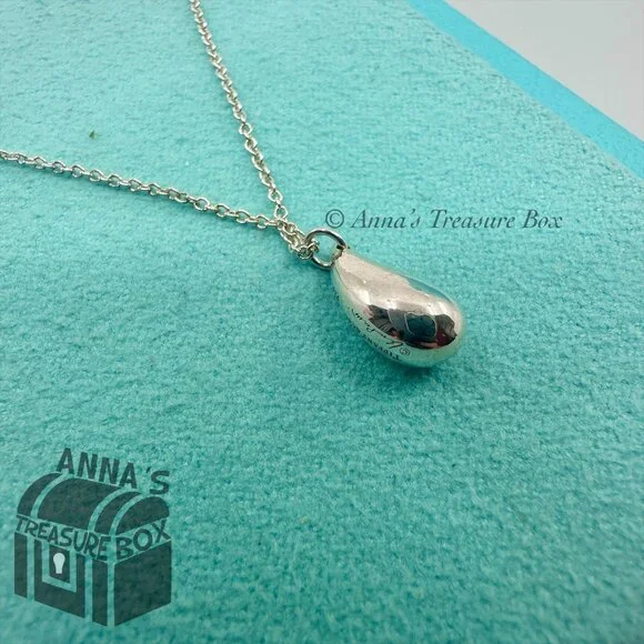 Pre-owned.In pristine condition.Kept in Tiffany blue pouch, ready for gifting.This is an authentic Tiffany & Co. 925 silver Elsa Peretti teardrop necklace.Teardrop size is approximately 12mm.Necklace length is 16".Dime for size comparison.Please see all photos and video on this beautiful classic piece.Comes with Tiffany blue pouch.If you have any questions, please ask :)