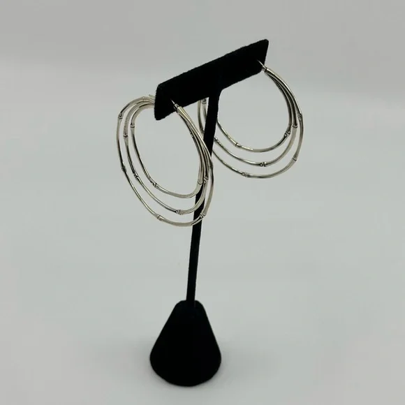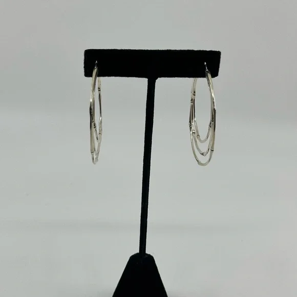 John Hardy Sterling Silver 925 Triple Bamboo Hoop Earrings